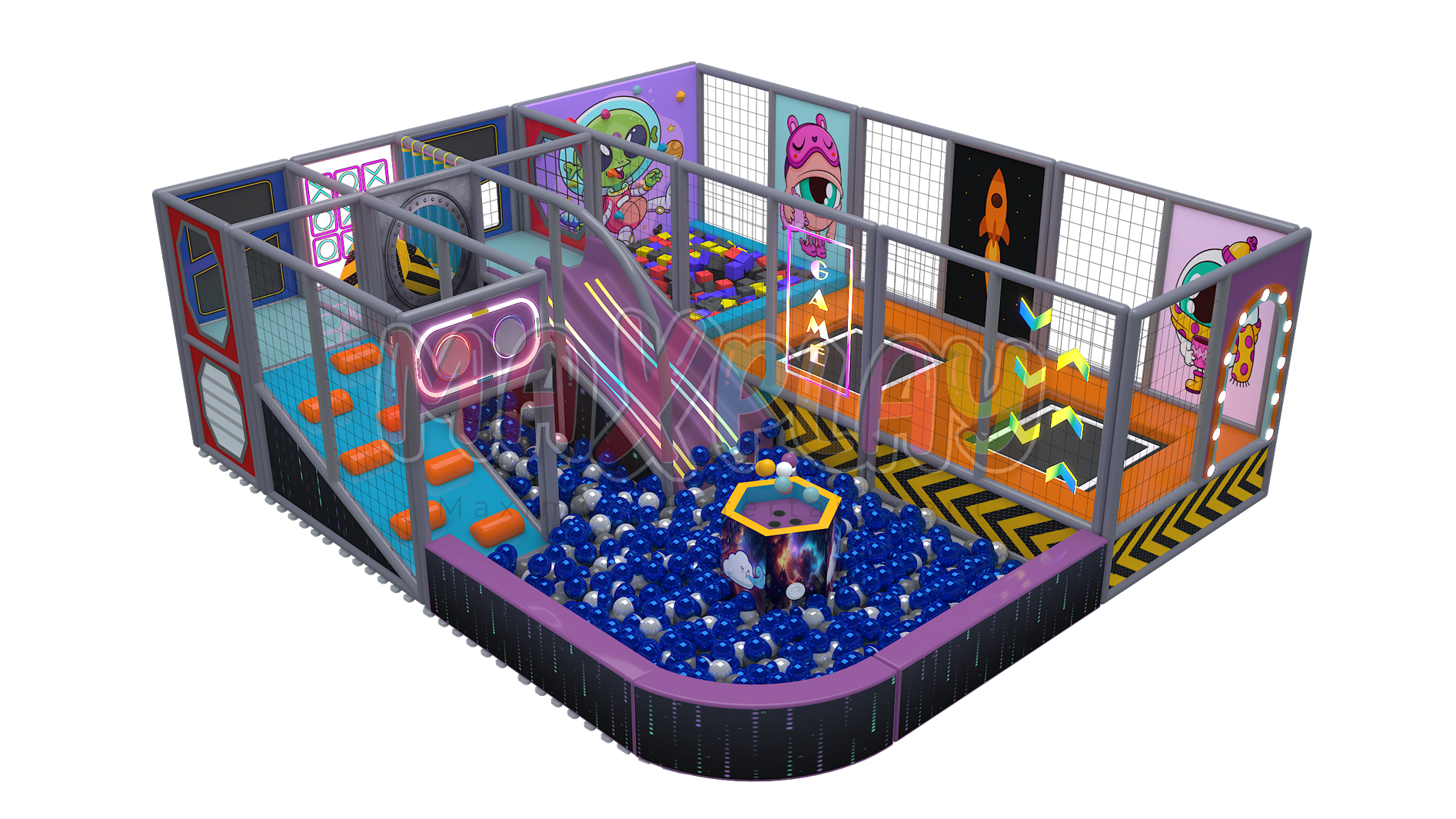 Maxplay Soft Play Slide is specially designed and meticulously manufactured from box profile using high standard metals. The metal parts are joined with gas welding technology and surrounded by high quality mesh nets for the safety of children.