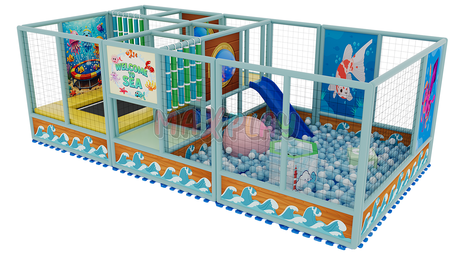 The Maxplay ball pool is specially designed and meticulously manufactured from box profile using high standard metals. The metal parts are joined with gas welding technology and surrounded by high quality mesh nets for the safety of children.