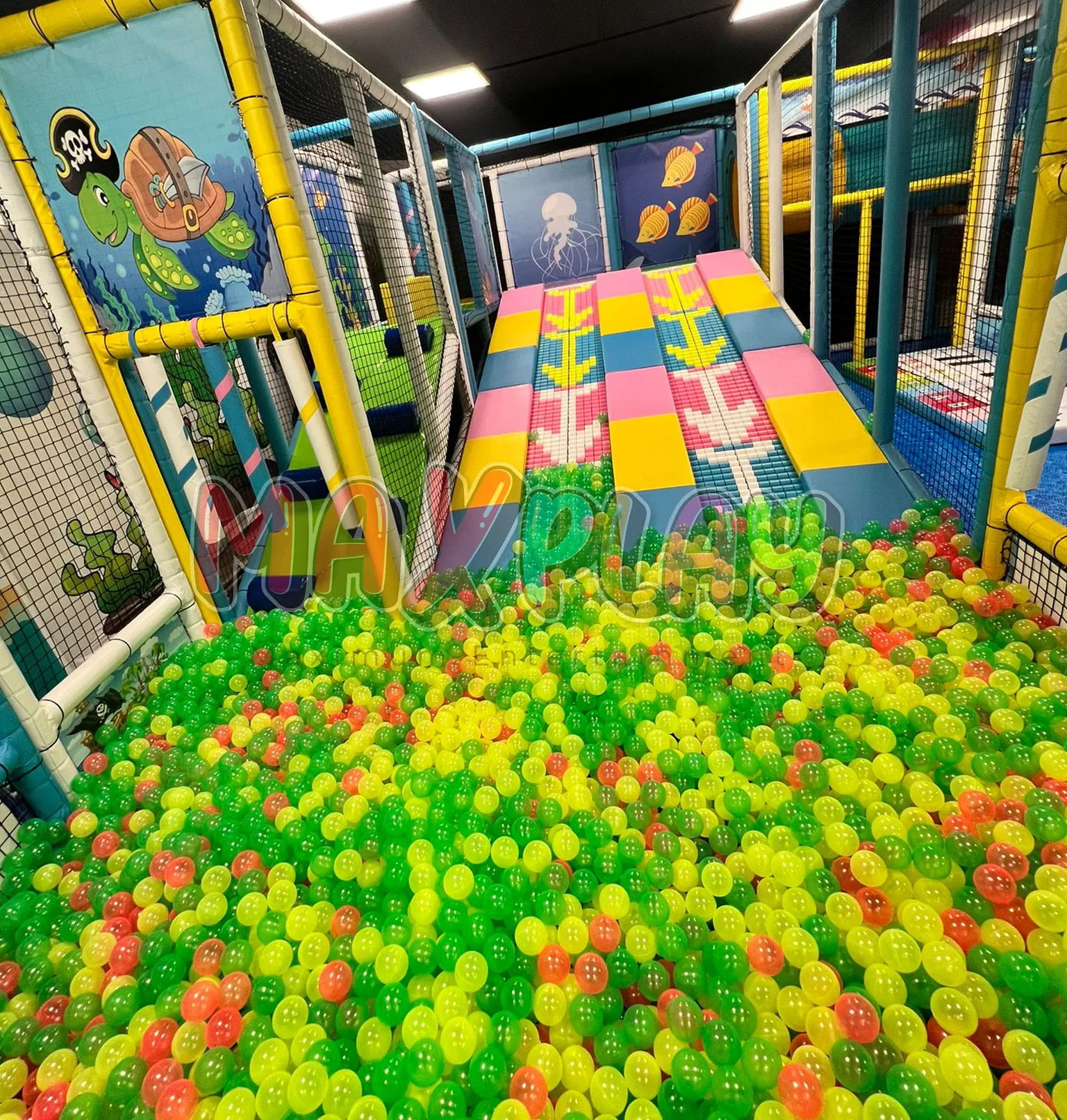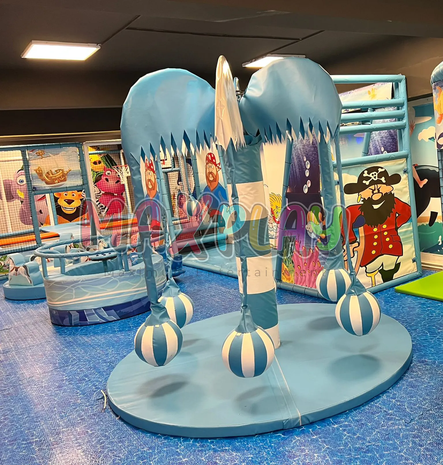 Deniz altı dünyasından ilham alınarak tasarlanan bu özel alan, çocuklara güvenli, eğlenceli ve estetik bir oyun deneyimi sunuyor.